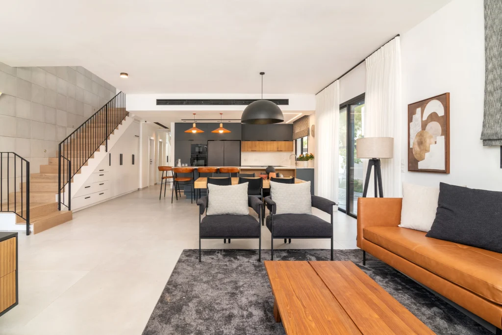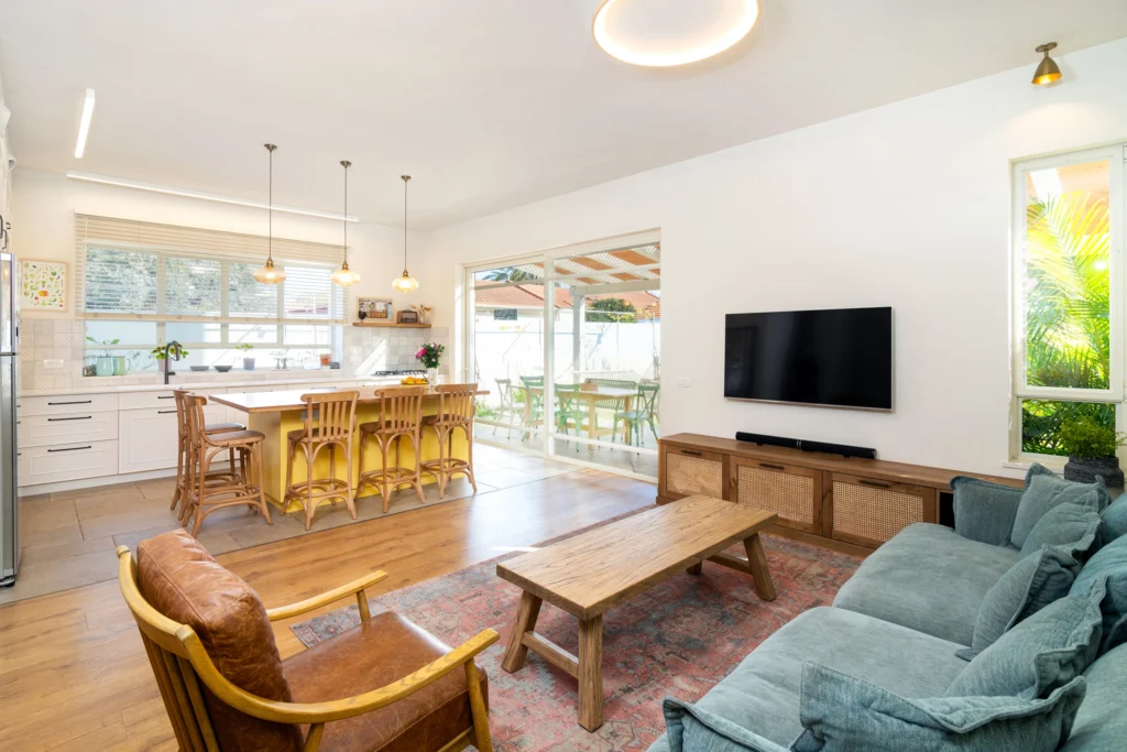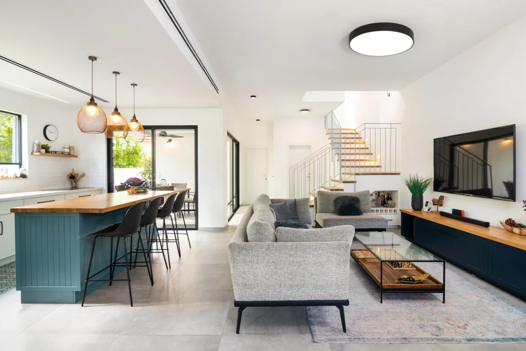 בית שנפתח אל האור — עם תכנון שמגדיל את המרחב ומייצר תחושת זרימה טבעית.