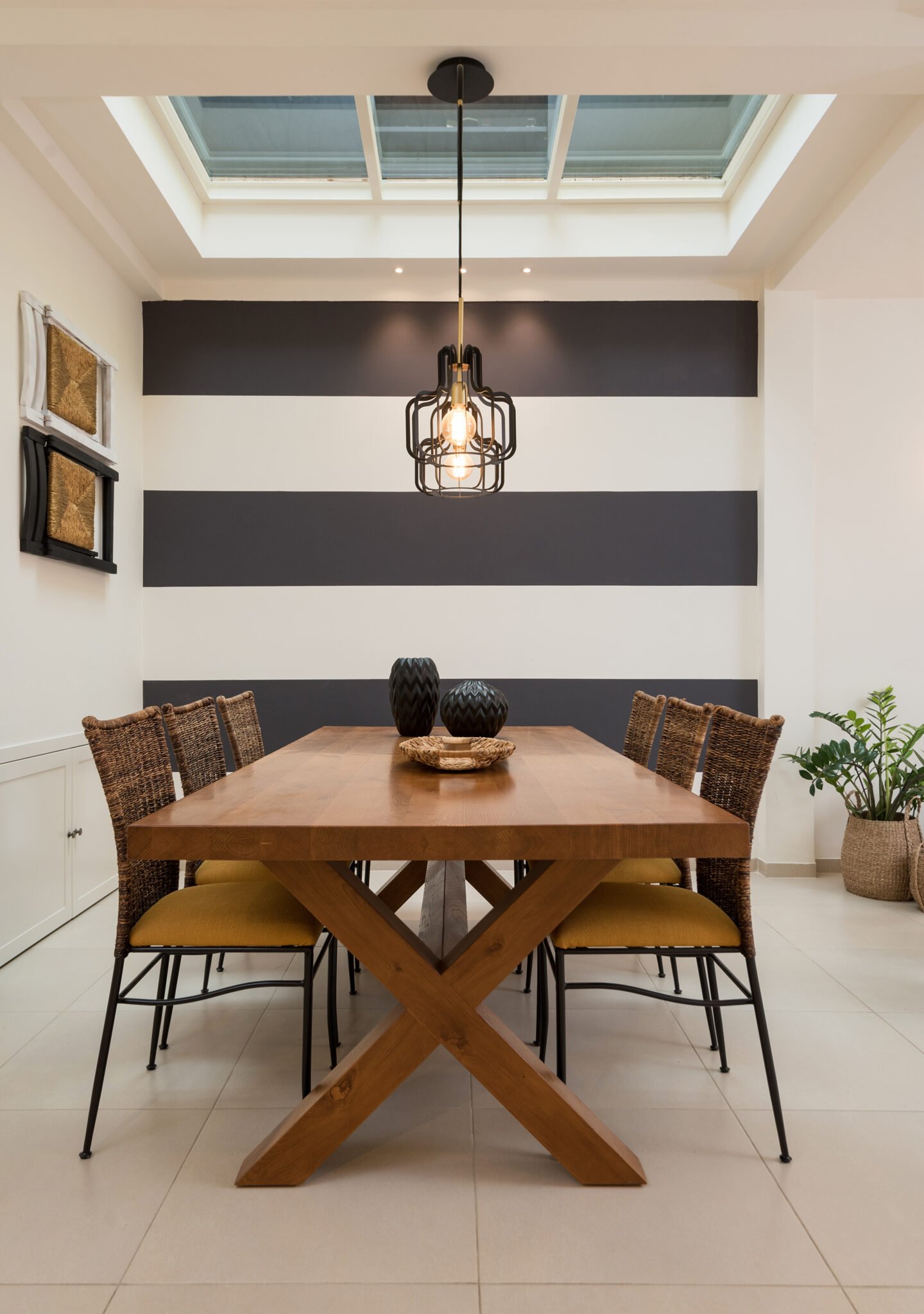 במהלך העבודה נוצר דיאלוג עיצובי מלא חיים – בין רצון להשתולל לבין הצורך בדיוק ואיזון. קירות בגוון חרדל, אלמנטים אלכסוניים ודינמיים לצד קווים אופקיים רגועים יצרו שפה עיצובית חדשה, שמשקפת את אופיו של הבית ואת יושביו.